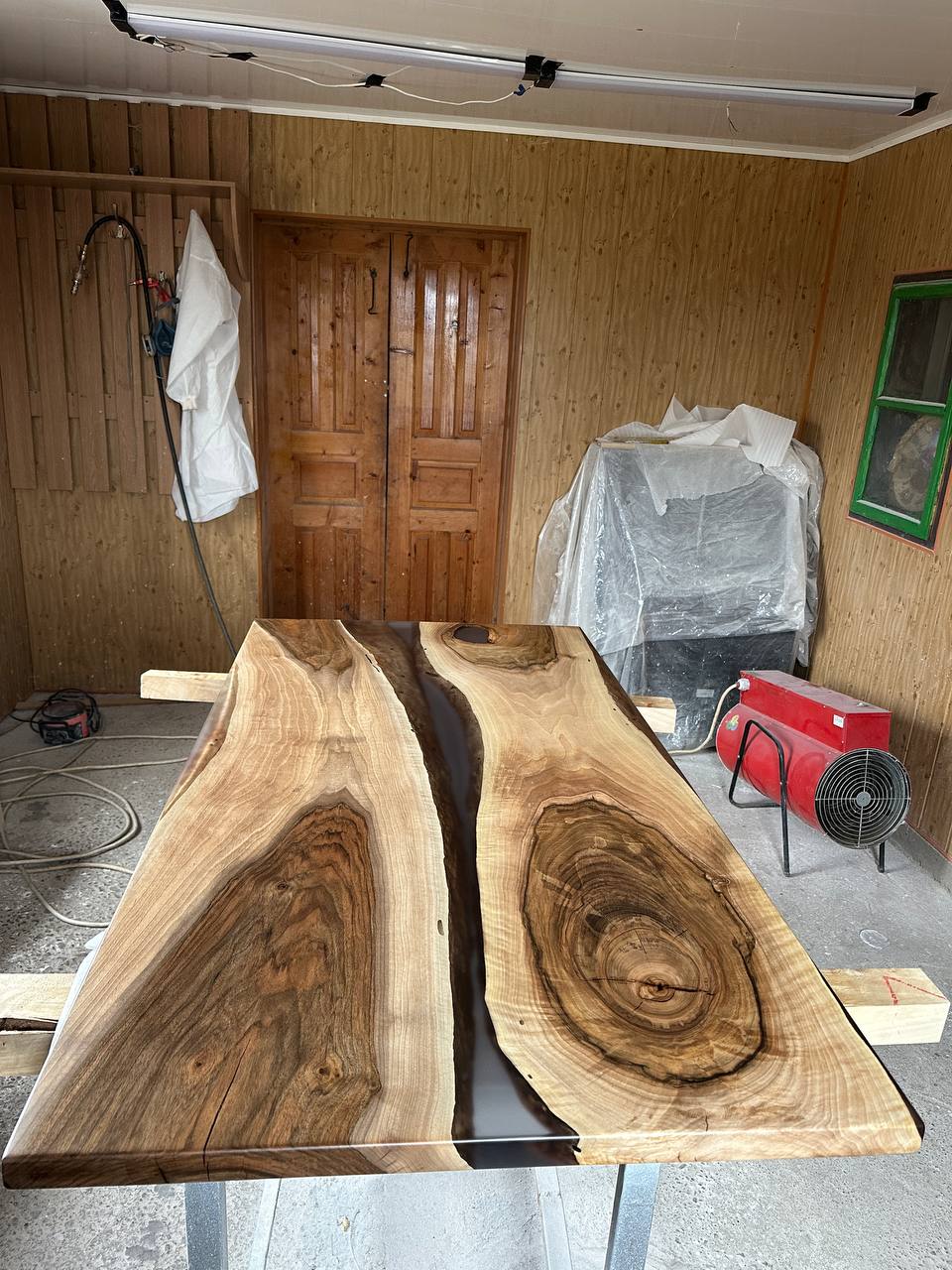 Material: solid walnut, black transparent epoxy resin