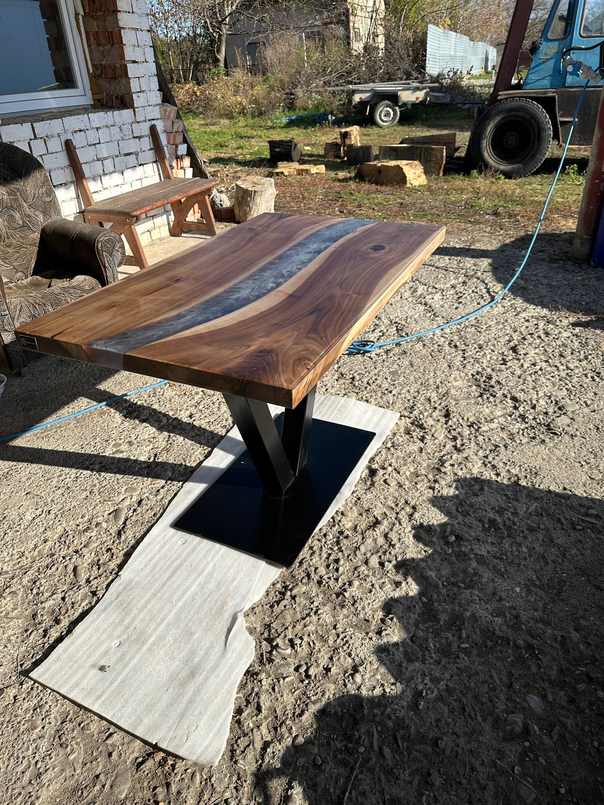 Material: walnut, gray translucent epoxy resin