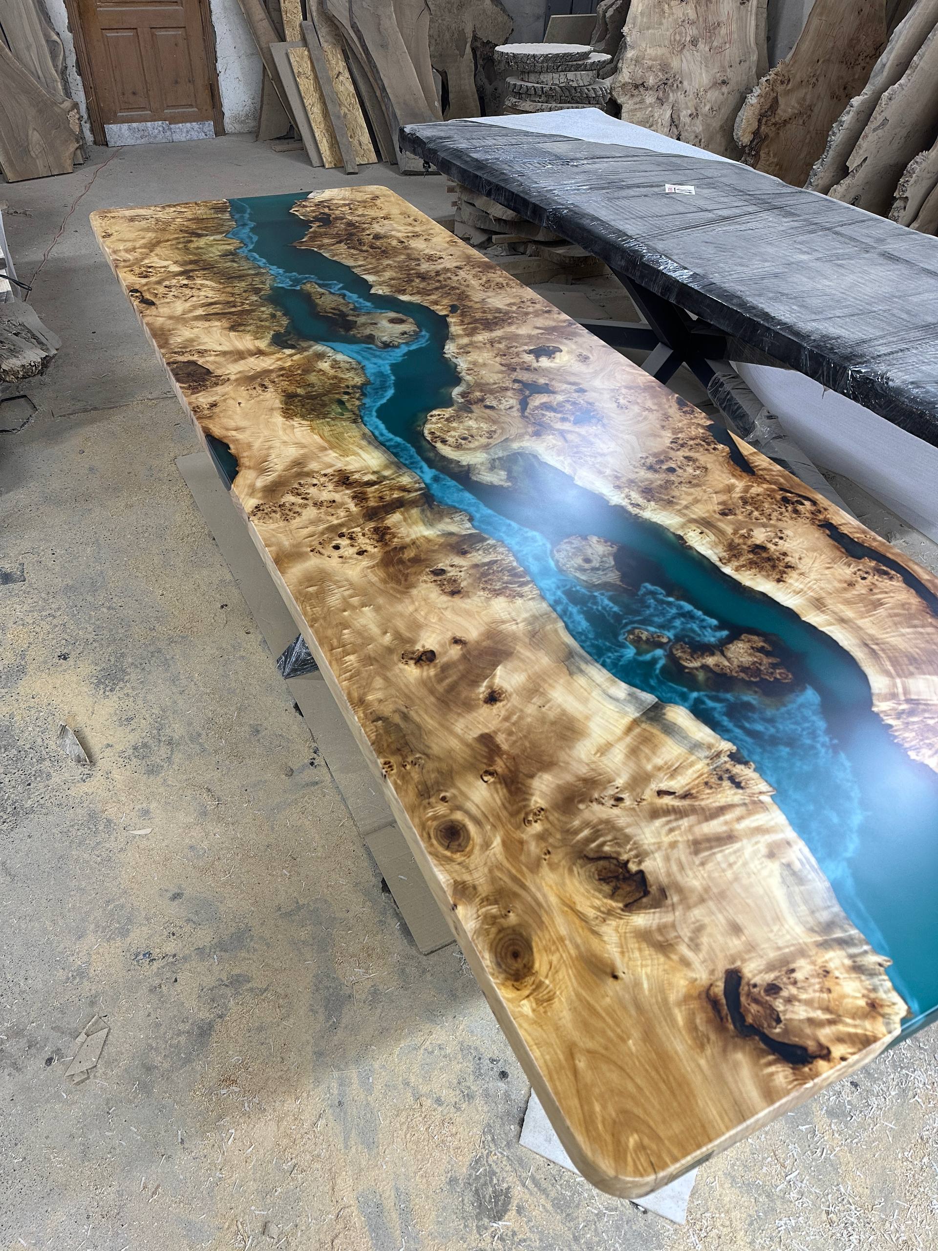 Material: Kapov poplar, emerald translucent epoxy resin with wave effect